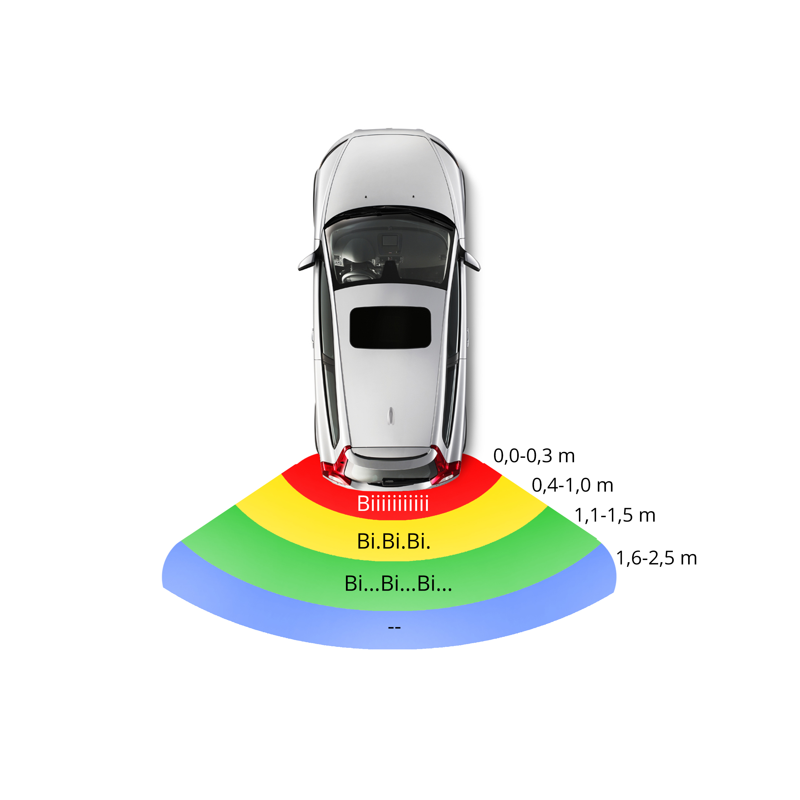 Po włączeniu biegu wstecznego – automatycznie zaczyna wykrywać wszelkie przeszkody znajdujące się w promieniu 2,5 metra od miejsca montażu czujników, tj. od zderzaka tylnego samochodu.