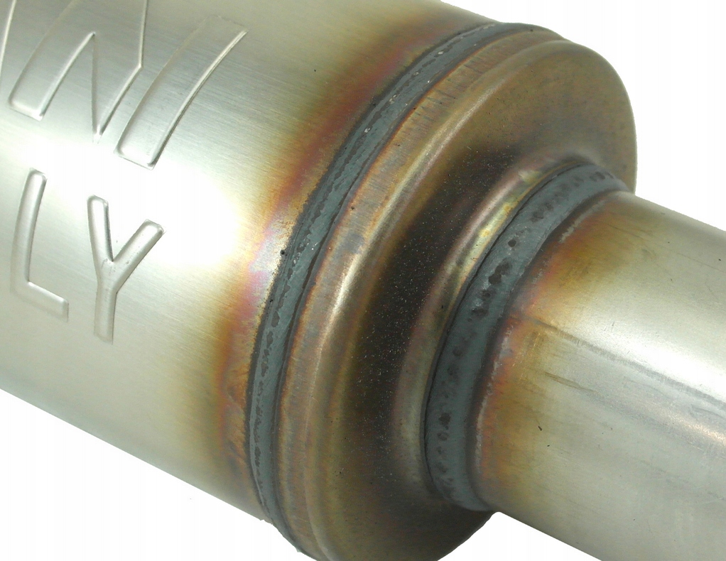 Przelotowy tłumik środkowy wykonany ze stali nierdzewnej z wysokiej klasy stali nierdzewnej o oznaczeniu 409RS.