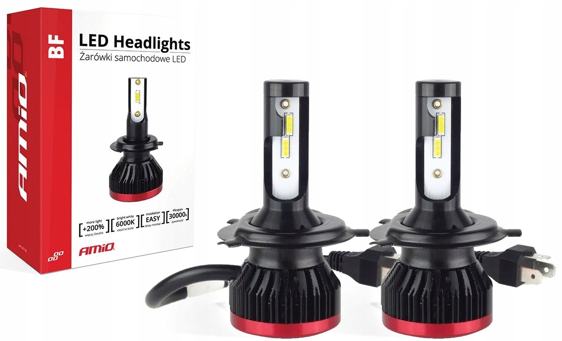 H4 LED ŻARÓWKI AMIO BF +200% 6000K MAŁE MINI H4