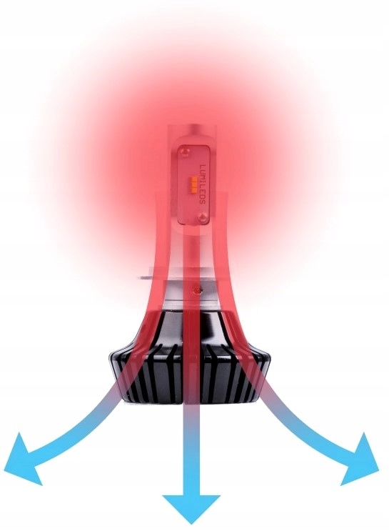 W żarówkach EinParts Automotive z diodami LUMILEDS LUXEON Z-ES PHILIPS wykorzystano najlepsze materiały termo-przewodzące takie jak miedź czy aluminium zapobiegające przegrzewaniu się. Ilustracja przedstawia prosty ale najskuteczniejszy ze sposobów chłodzenia wykorzystany właśnie w żarówkach marki EinParts.