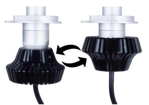 Możliwość odwrócenia radiatora o 180° w przypadku reflektorów z mniejszą ilością miejsca na żarówkę.