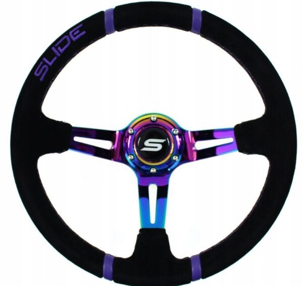 Kierownica wykonana z wysokiej jakości materiałów. W zestawie klakson, śrubki montażowe, przewody do podłączenia klaksonu i naklejka na klakson z logiem producenta. Rozstaw śrub standardowy, czyli 6 otworów co 35mm jak MOMO/Sparco.