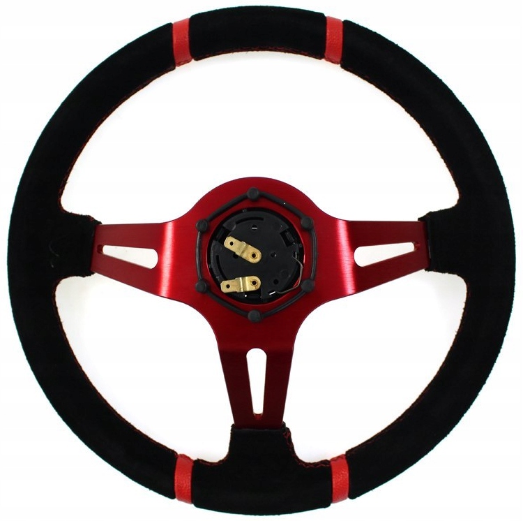 Kierownica wykonana z wysokiej jakości materiałów. W zestawie klakson, śrubki montażowe, przewody do podłączenia klaksonu i naklejka na klakson z logiem producenta. Rozstaw śrub standardowy, czyli 6 otworów co 35mm jak MOMO/Sparco.