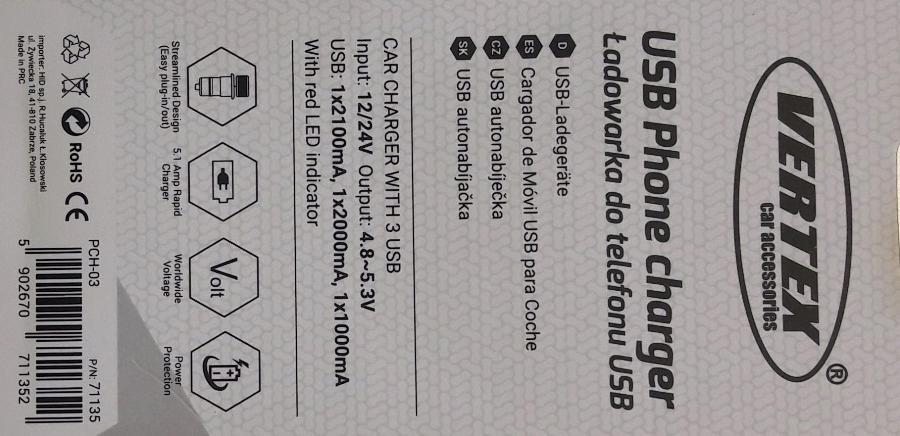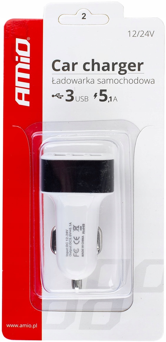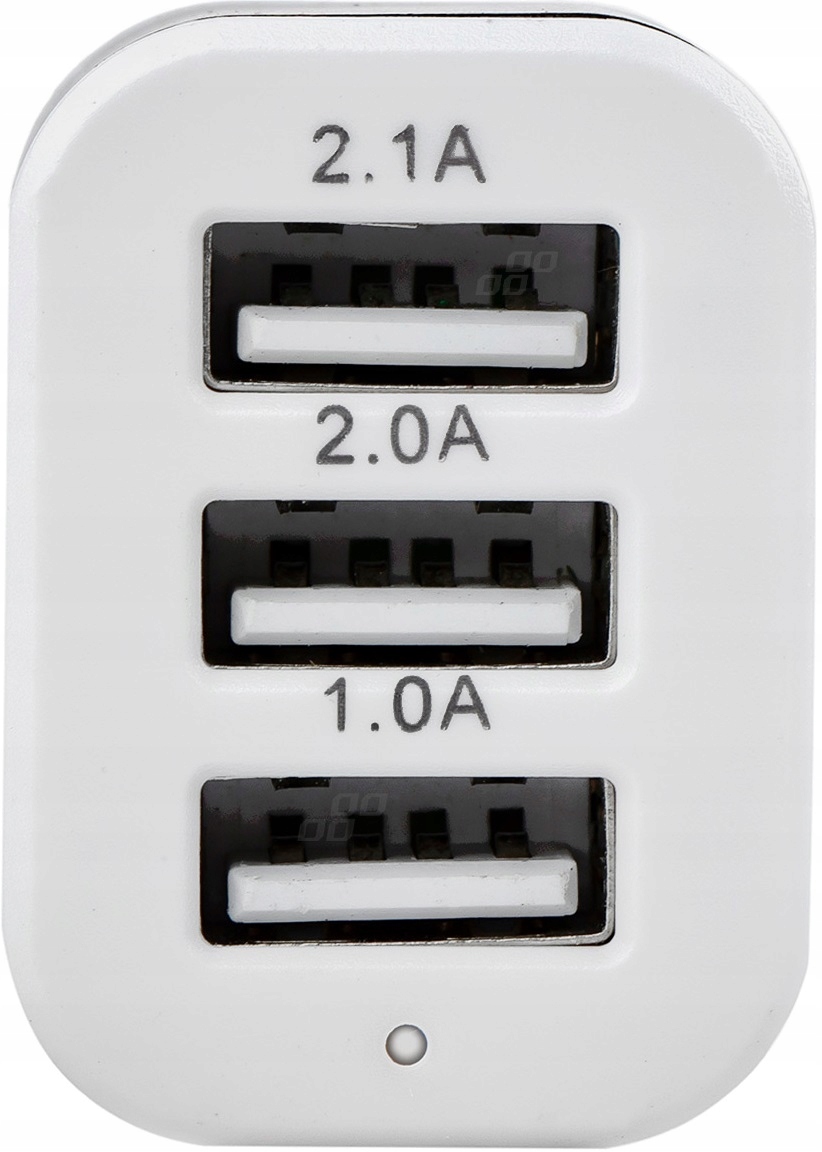 - 3 gniazda: 1x1A, 1x2A, 1×2.1A