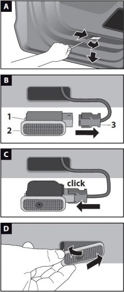 Do wymiany lampek LED LOGO wystarczy śrubokręt płaski: