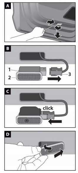 A. Wyciągamy starą lampkę podważając i wciskając śrubokrętem plastikowy element przytrzymujący lampkę w otworze. Lampka sama powinna się wypiąć z mocowania.
