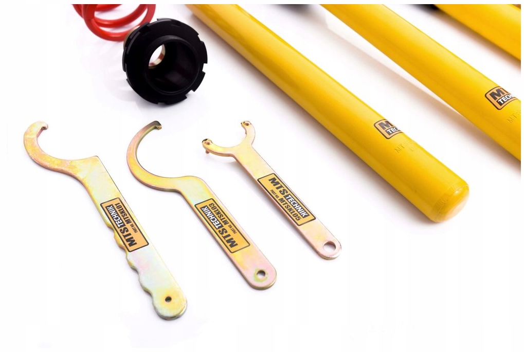 • Specjalnie dobrany rodzaj gwintu i szeroki zakres regulacji zawieszenia umożliwia optymalne ustawienie wysokości auta także w zamontowanym stanie.