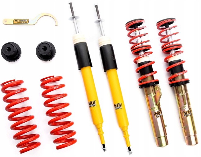 - Specjalnie dobrany rodzaj gwintu i szeroki zakres regulacji zawieszenia umożliwia optymalne ustawienie wysokości auta także w zamontowanym stanie.