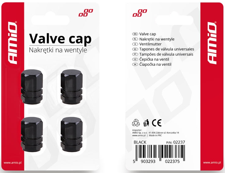 NAKRĘTKI NA WENTYLE ZAWORY ALUMINIOWE KAPTURKI KOMPLET 4-SZTUKI CZARNE