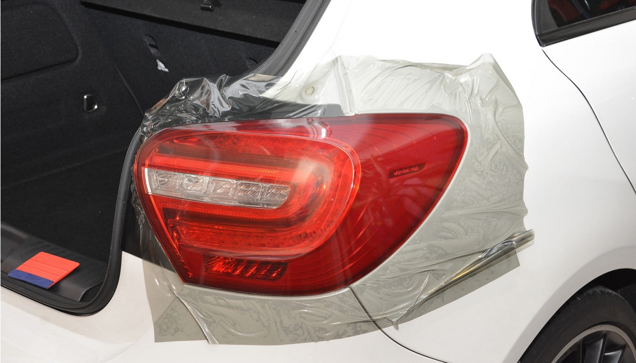 - nagrzej folię opalarką lub suszarką, by łatwiej dopasować ją do krzywizn lampy
