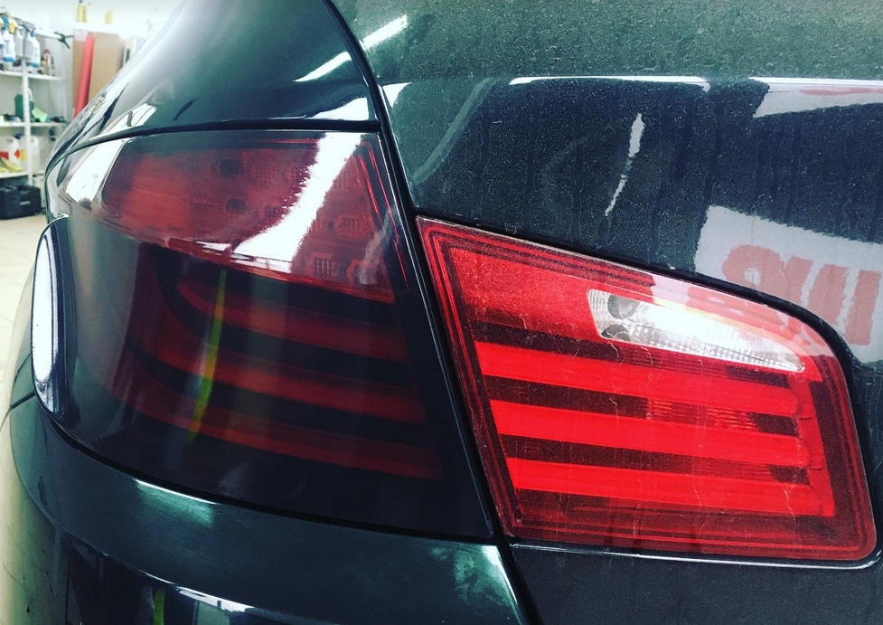 - nagrzej folię opalarką lub suszarką, by łatwiej dopasować ją do krzywizn lampy