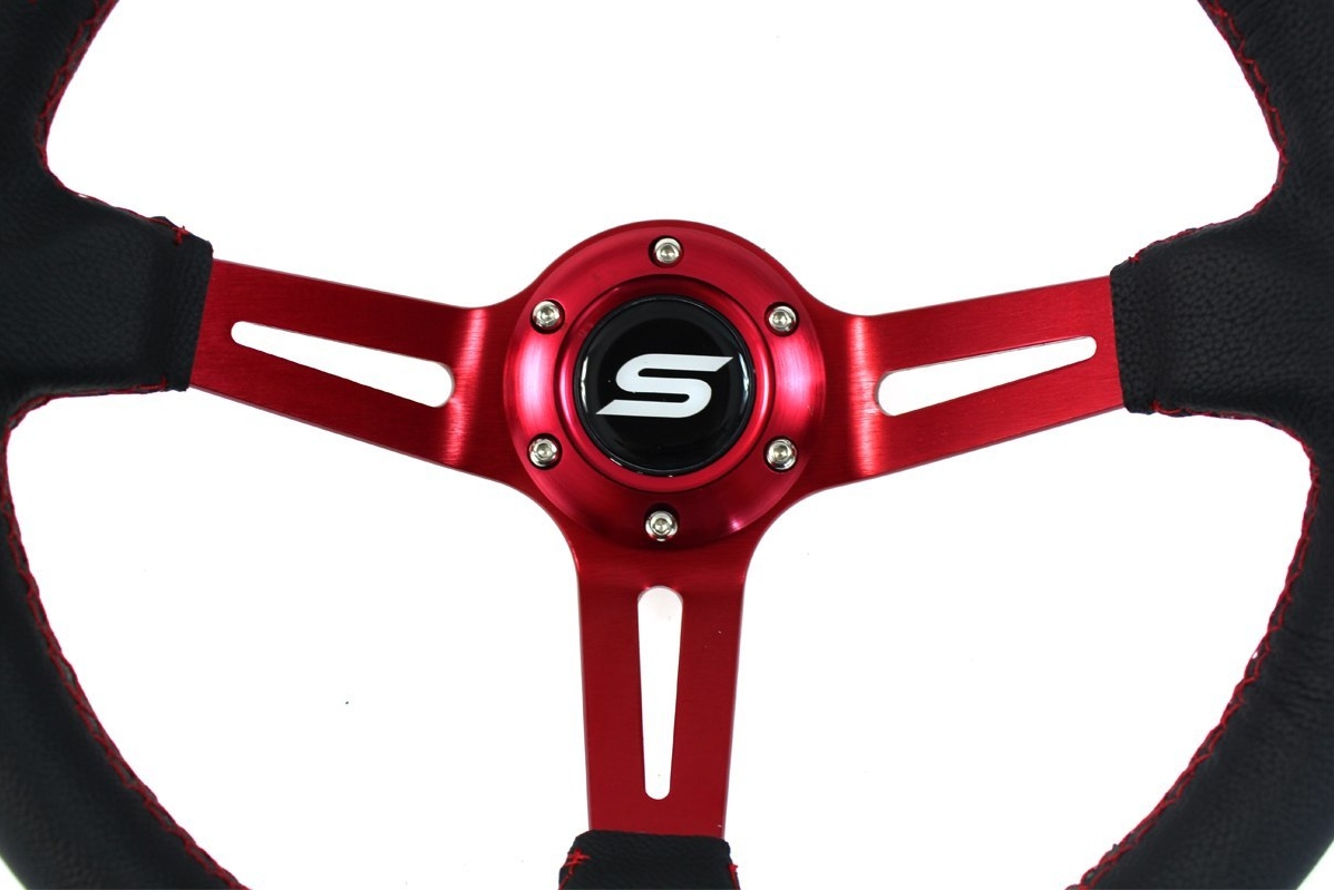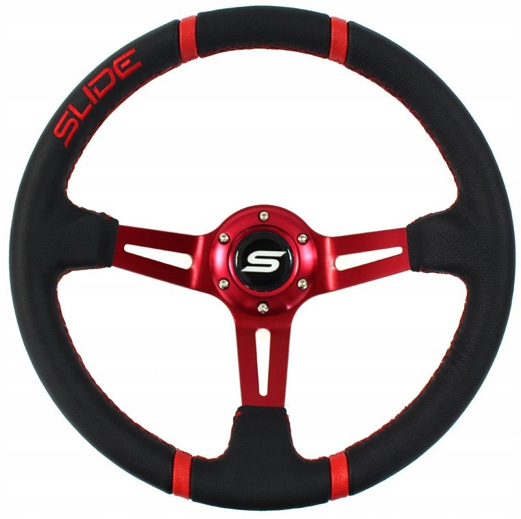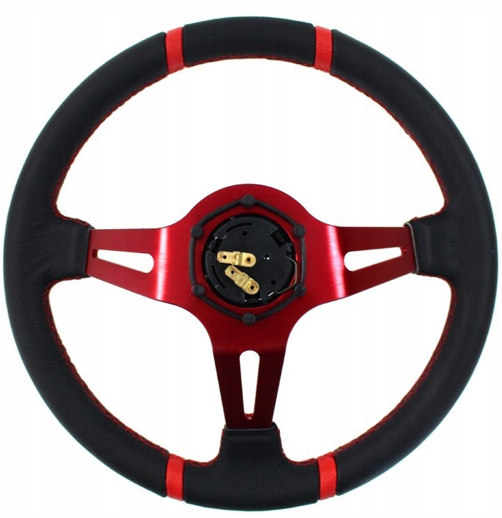 Kierownica wykonana z wysokiej jakości materiałów. W zestawie klakson, śrubki montażowe, przewody do podłączenia klaksonu i naklejka na klakson z logiem producenta. Rozstaw śrub standardowy, czyli 6 otworów co 35mm jak MOMO/Sparco.