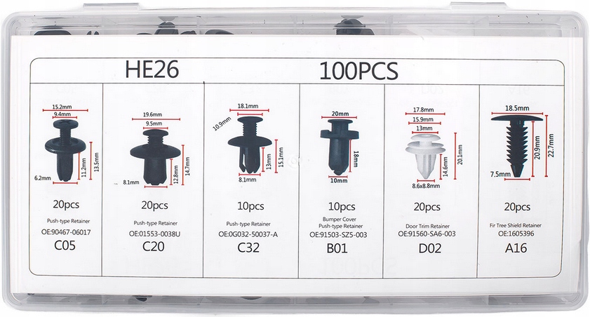 - 100 uniwersalnych spinek samochodowych.
