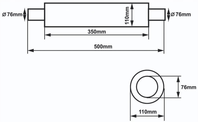 TŁUMIK ŚRODKOWY WYDECH SPORTOWY 35-cm PRZELOTOWY 3-CALE 76mm SLIDE