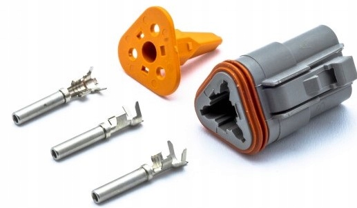 - Wtyk żeński szczelny 3 pin. Produkt Oryginalny, zastosowanie fabryczne wyposażenie wiązek elektrycznych wielu samochodów, maszyn rolniczych lub budowlanych, seria złącz odpornych na zmiany temperatury otoczenia, smary, ozon, benzynę, sól, płyn hamulcowy oraz olej silnikowy.