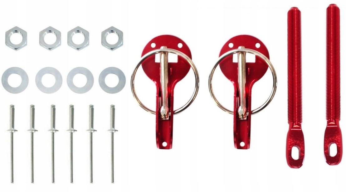 Uniwersalne zapinki do wykonane z aluminium. Mogą być zastosowane do maski, klapy, zderzaka, itp.